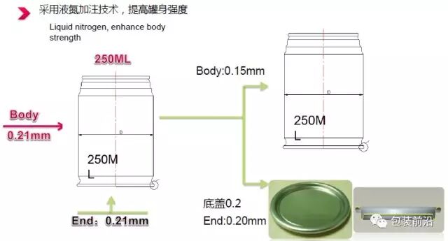 另一个应用在铁罐上的技术就是液氮的加注,液氮产生从里向外的压力,增加抵抗外界压力的能力,甚至一些轻微的瘪罐可以反弹回来,液氮的加注首先减少了铁的应用,降低成本,第二减少运输环节的成本,第三减少了瘪罐,第四对货架期有正面作用。而且氮气也是惰性气体,没有可燃性和腐蚀性,是很好的低成本材料。